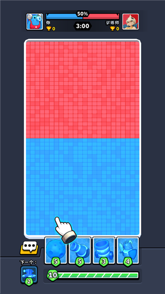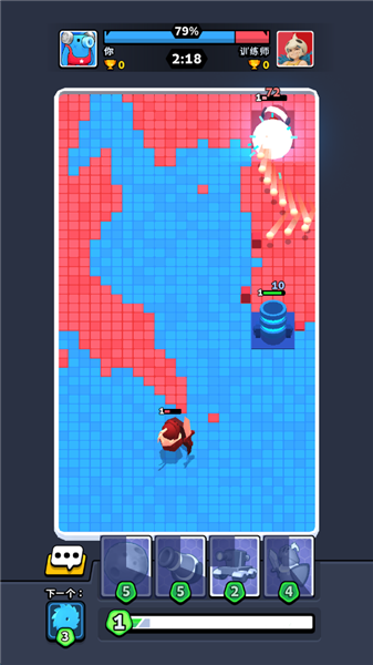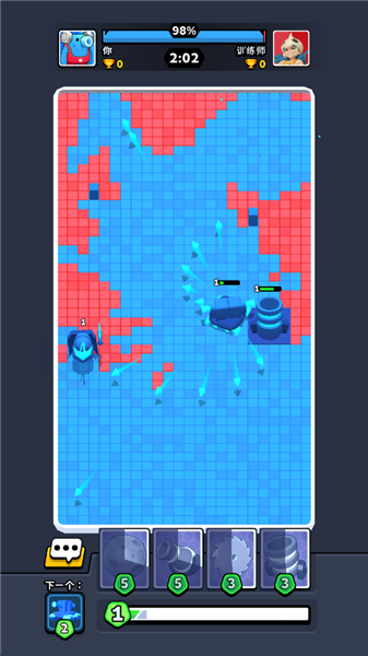 1.游戏初始阶段会触发新手引导,玩家需操控蓝色阵营完成对红色领地的征服。