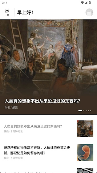 1、打开知乎日报app可以看到当天精选内容
