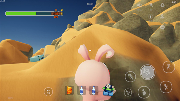 3、在屏幕左上角是你的体力条,你的体力会因为携带的物品重量、受伤、饥饿等因素降低,使用道具可以恢复体力。