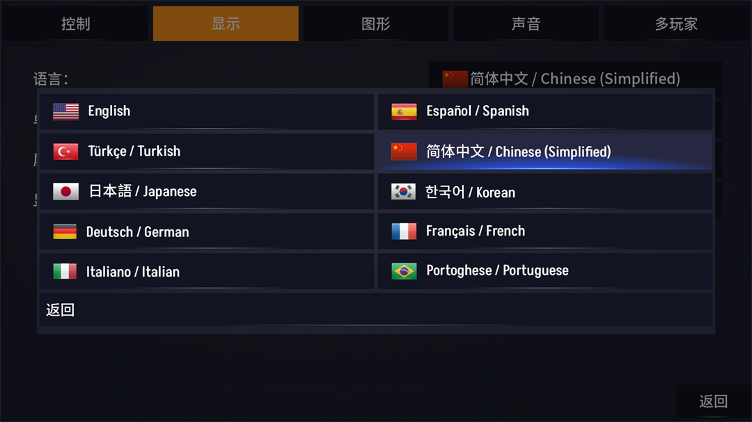 2、在显示中切换语言为简体中文模式。
