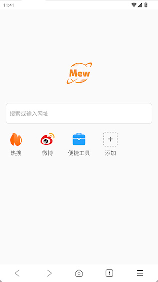 1、打开喵喵浏览器,可以看到搜索框与快捷导航