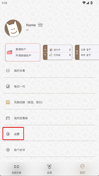 1、进入“我的”界面,点击设置