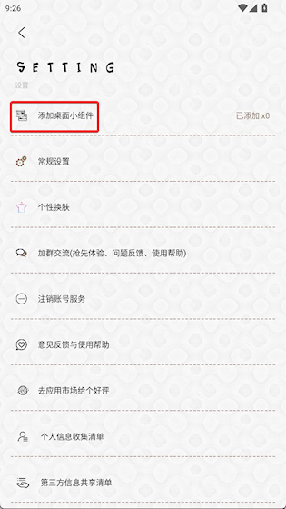 2、点击添加桌面小组件