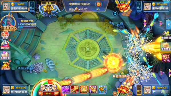 3、【万种炮台 特殊技能】坐拥全捕鱼品类最多炮台数量,超高炮倍无需解锁,一键开炮就能一炮入魂、大杀四方,选对炮台就能嗨翻全场!
