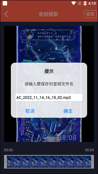 5、输入提取后音频的保存文件名,点击“确定”,即可完成音频提取操作。