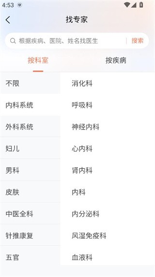 可在“找专家”页面用搜索功能精准查找,或按科室、地区筛选,仍未找到可联系客服协助匹配。