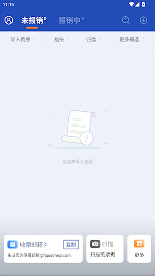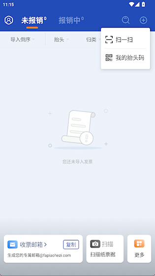 2、进入主界面,在下方通过扫描和邮箱功能导入信息