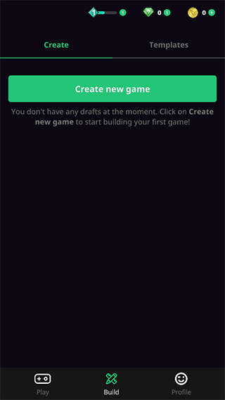 6、这个时候就可以到build界面,你可以建立一个属于你自己的游戏项目。