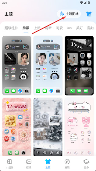 1、进入主题界面点击主题图标