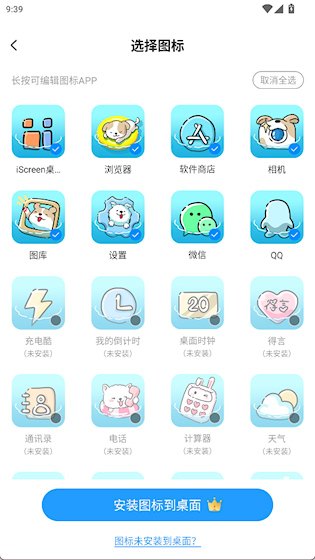 3、选择多个图标,点击安装图标到桌面
