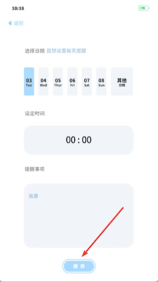 3、设置时间,输入事项说明后保存