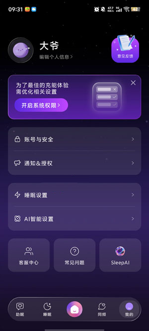 5、根据自身需求,挑选对应功能,进行能量管理、心理疗愈或睡眠监测相关操作。