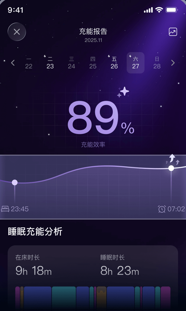 4、具备智能睡眠监测功能,以非侵入式方式追踪睡眠周期,生成专业监测报告。