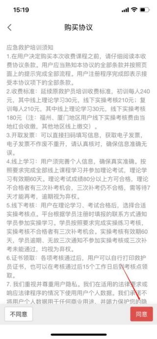 5、阅读并“同意”购买协议条款,方可继续完成后续报名及支付流程。