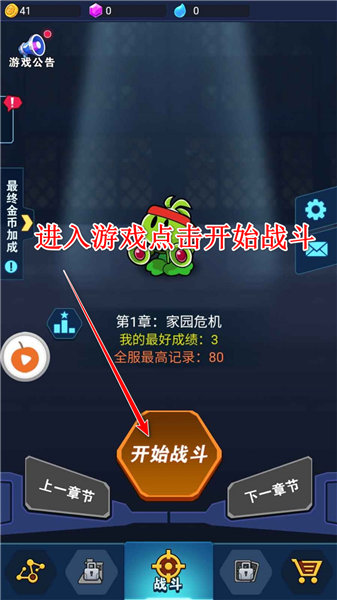 1.进入游戏点击开始战斗,