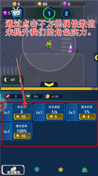 2.通过点击下方的属性数值来提升我们的角色实力。