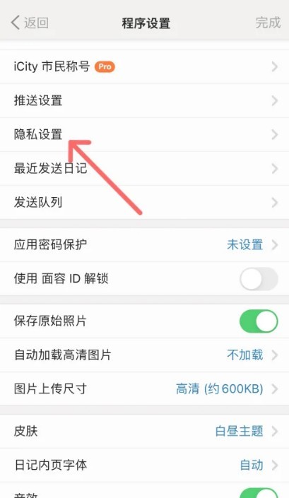 3、在设置页面中滑动屏幕,查找“隐私设置”一栏,找到后点击进入隐私相关功能页。
