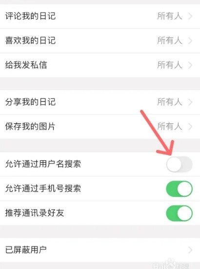 4、在隐私设置页面中,找到“允许通过用户名搜索”选项,将其关闭即可守护隐私。