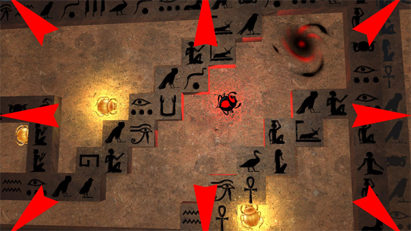 象形文字翩翩起舞。障碍物脉动着。