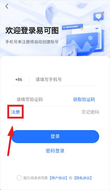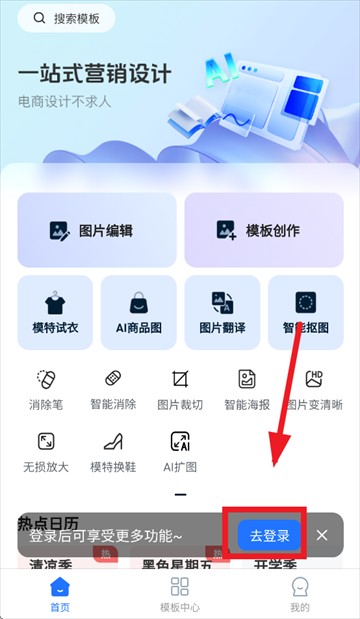 1、下载并安装易可图app,安装完成后打开软件,进入首页后点击“去登录”选项。