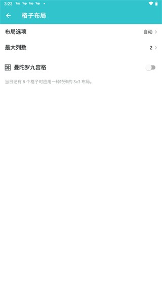 2、进入设置页面后,在功能列表中找到“格子布局”选项,点击进入布局设置界面。