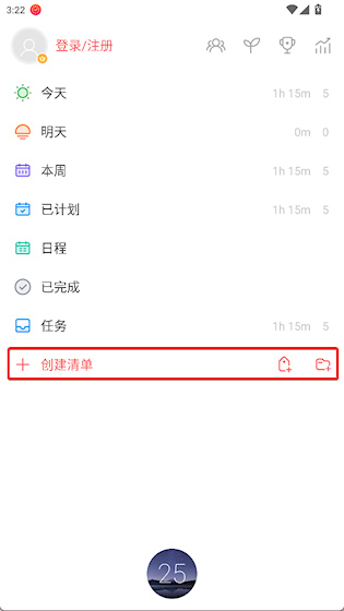 2、点击+创建清单