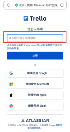 1、首先打开Trello,点击“注册”。