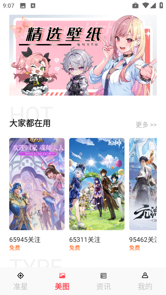 1、打开折丸手游助手app,进入主界面后点击下方【美图】栏目。