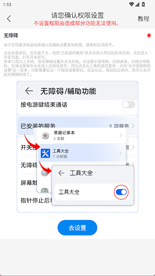 2、点击右上角按钮查看如何开启权限