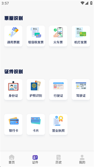 3、根据实际需求,选择票据识别、证件识别等对应功能,完成精准识别。