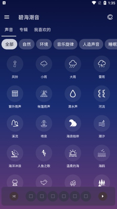 自然声音:海洋类包含海浪拍岸、潮汐声、海洋冲浪等,仿佛置身海边,让人平静放松。