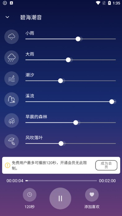 2、软件内提供超多不同类型的白噪音,各类声音可自由搭配组合,适配不同需求。