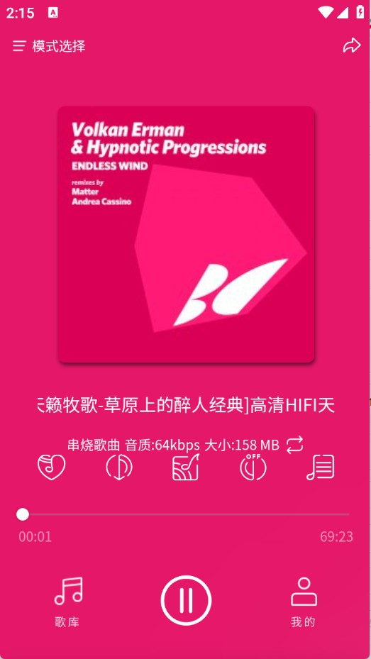 2、播放界面设置多种模式切换选项,可根据需求灵活调整音乐播放方式。