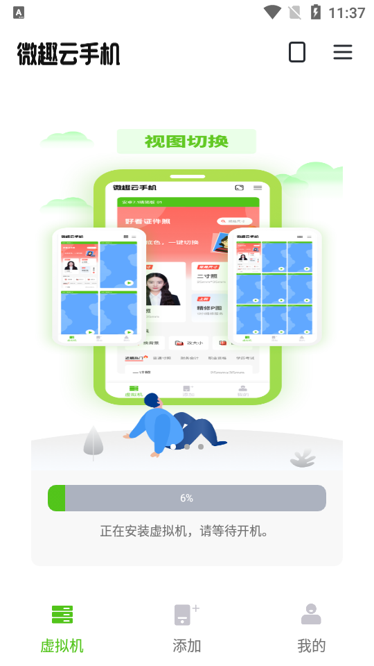 1、下载并安装微趣云手机APP,完成安装后打开软件,直接进入操作界面。
