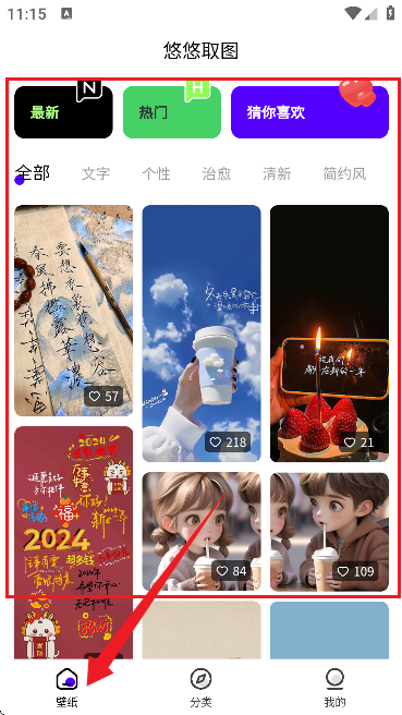 3、在壁纸板块可浏览海量图片资源,最新分类中还能查看平台推出的原创壁纸。