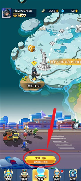 2、点击下方世界即可进入关卡地图页面,点击下方主线任务按钮即可进入关卡。