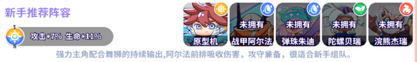 阵容特性:主力主C+舞狮持续输出,阿尔法前排吸收伤害、攻守兼备,适配新手推图。