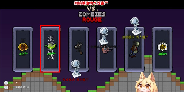 1、下载安装之后,点击继续游戏,会有各种不同的模式显示在上面,比如说抽奖模式﹣雪人僵尸,花园模式等等。