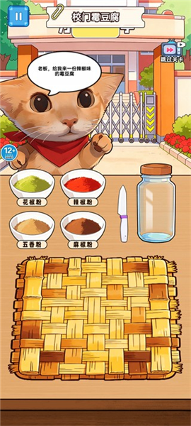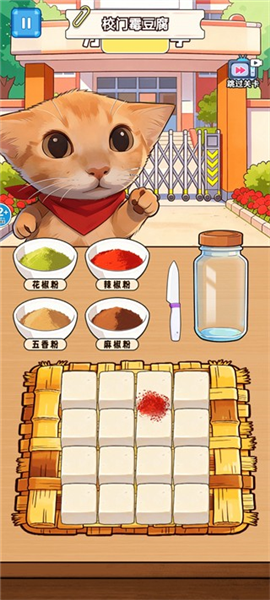 1.从豆腐切块、酱料调配,到成品装盒,完整的制作流程都能通过简单操作体验,真实还原街头摆摊的全过程。