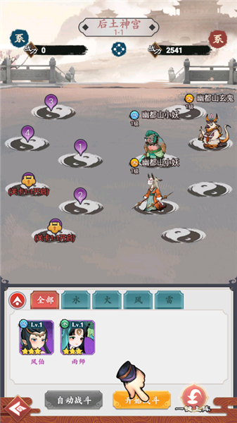 大荒世界分为「水」「火」「风」「雷」四大阵营,彼此相互克制。你可自由搭配灵兽阵容,灵活组合各类阵法,在山海世界中登顶最强之路。