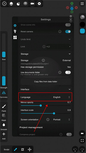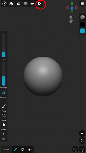 1、首先打开Sculpt+软件官方最新版,然后点击上方的齿轮设置图标。