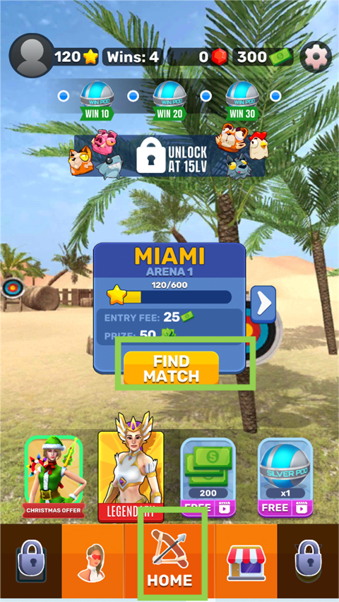 3、 装备升级:收集游戏内货币,购买和升级各种弓箭装备。