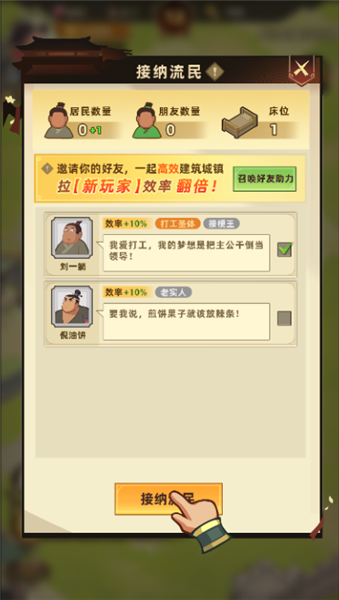 3、接纳游戏里的流氓,增加城邦人口,提升生产力,