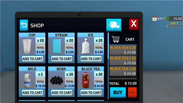 10.还可以去后面的电脑进行进货,点击add to cart就能实现进货了。