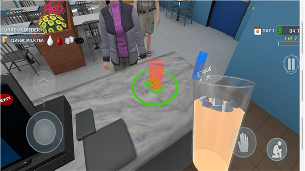 3、采用高品质3D画面设计,对奶茶原料、制作工具、店铺场景等进行精细化建模,茶底的色泽、配料的纹理,制作过程中的动态效果,都还原得十分逼真,大幅提升视觉体验,仿佛置身于真实的奶茶店内,增强游戏的代入感。