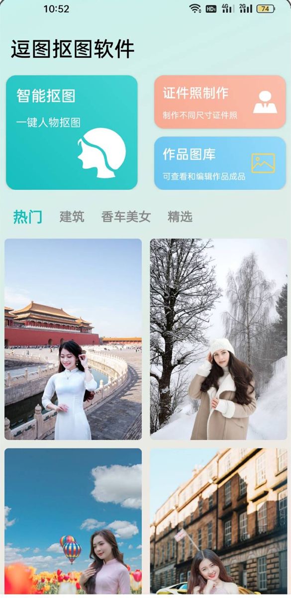 1、支持智能一键抠图功能,自动识别画面中人像边缘,细节处理精准细腻。