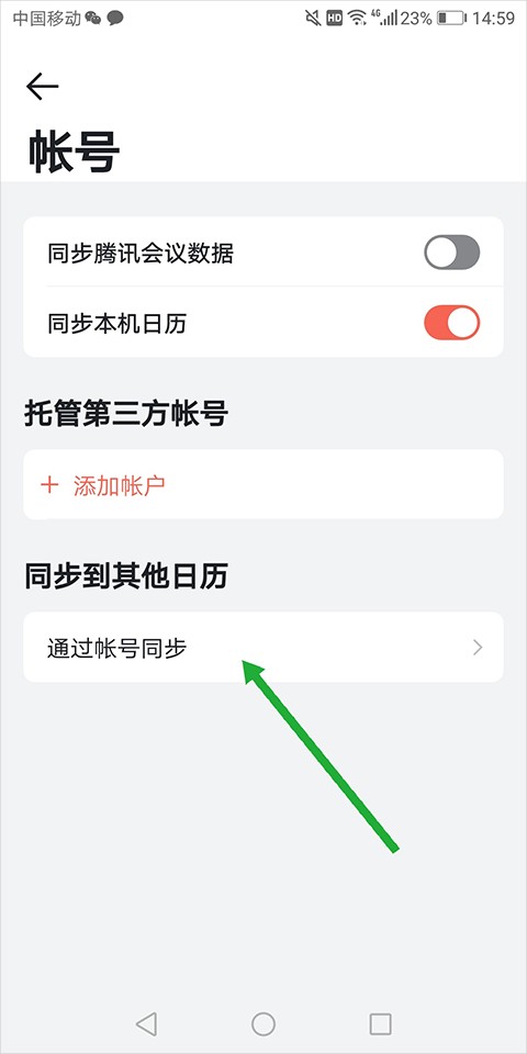 2、在跳转的新页面中,找到并点击【通过账号同步】功能。