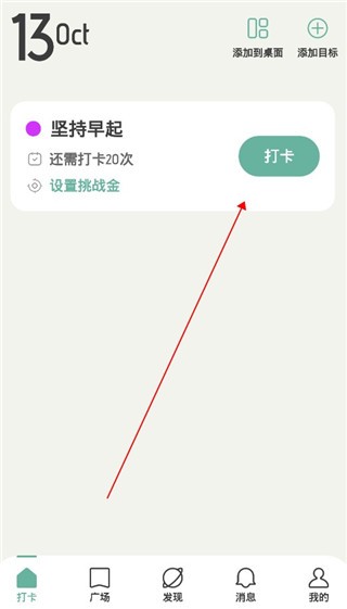 1、下载并打开软件,在首页点击自定义目标,设定每日需要完成的打卡任务。