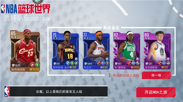 3.选择其他首发球员,可以点击换一换来试试运气切换。