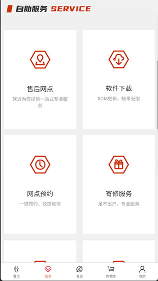 2、点击服务选项,可查看各类售后服务,包含售后网点、rom下载等自助服务项目。
